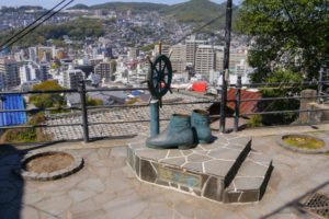 この「龍馬のブーツ像」があります。こちらは亀山社中創立130周年の時に記念として1995年に建立されました。足を中にいれることもできるので、龍馬が見たように長崎の景色を見渡して記念撮影をどうぞ。